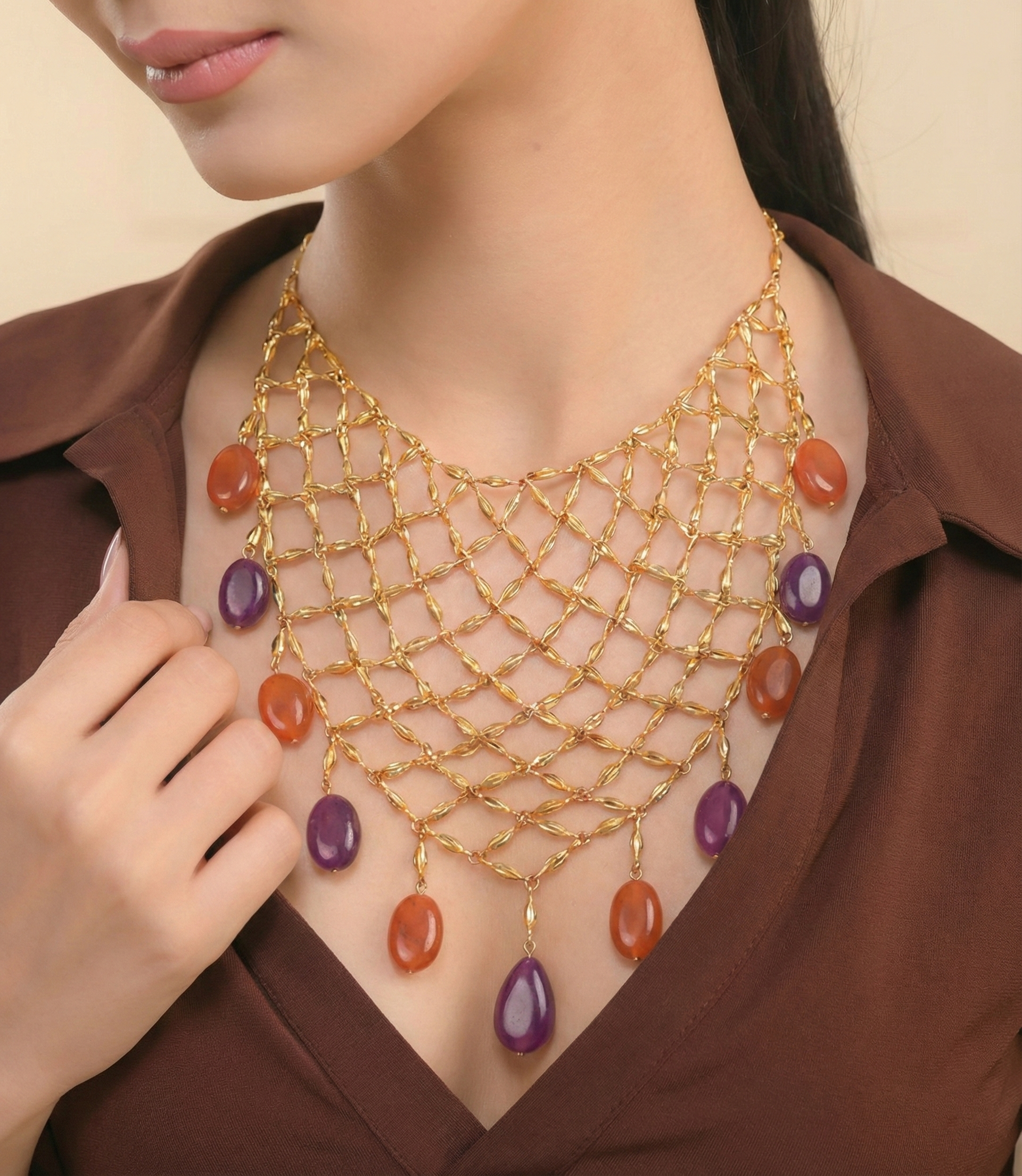 Ethnic Net Drape Necklace
