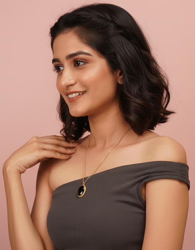 - Black round stone pendant