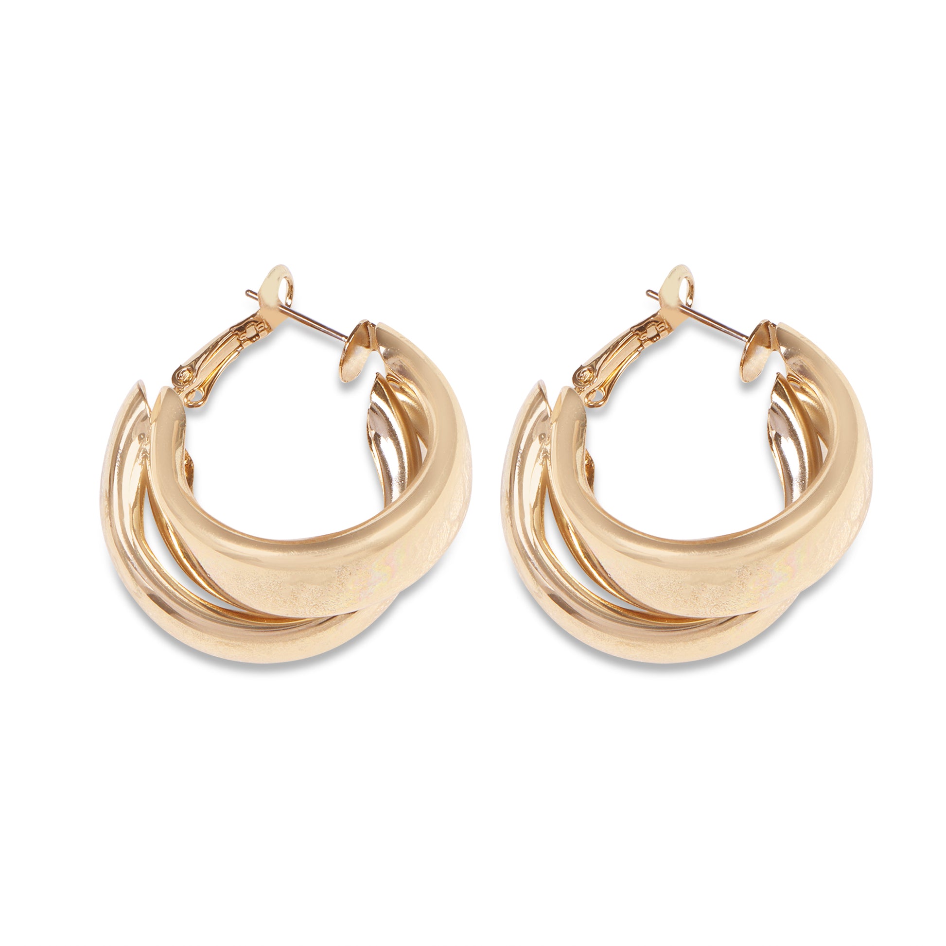 Specialness to your daily look with our Luxe Triple Layer Gold Hoop Earrings. Featuring an edgy layered design and topped with gold gold-plating, these gold hoop earrings bring an amazing level of luxury and sophistication with them. Light, trendy, and totally easy to wear.