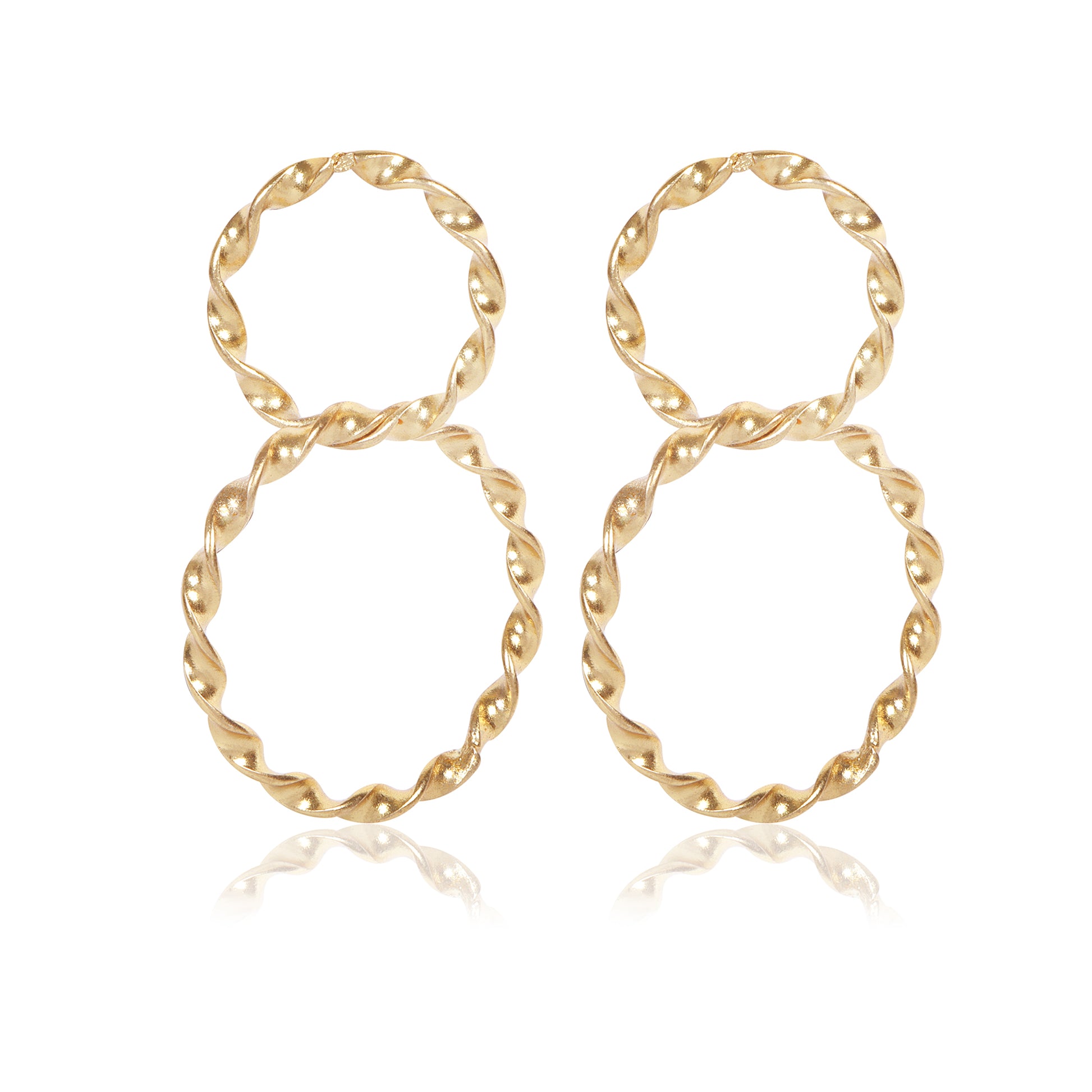 Glamour with these gold-plated twisted hoop earrings, featuring trendy dual ring designs. Whether it be an evening out at a party, brunch with your BFFs, or an evening event, these earrings will make heads turn and make your look more stunning.